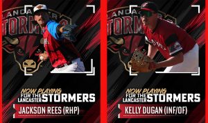 Slugging first baseman Kelly Dugan and powerful right-handed reliever Jackson Rees have been signed to contracts by the Lancaster Stormers for the 2025 season, it was announced today by manager…